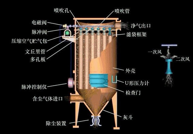 袋式除尘器按清灰方式可以分为机械清灰、逆气流清灰、脉冲喷吹清灰三类;按过滤方式可以分为内过滤式和外过滤式两类;按进出口的位置不同可分为下进风和上进风两类。