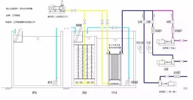 MBR是指将超、微滤膜分离技术与污水处理中的生物反应器相结合而成的一种新的污水处理装置。这种反应器综合了膜处理技术和生物处理技术带来的优点。超、微滤膜组件作为溺水分离单元,可以完全取代二次沉淀池。与传统工艺比较,这种将膜与生化反应相结合的MBR工艺有明显优势。