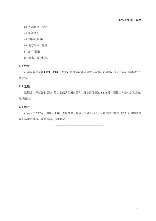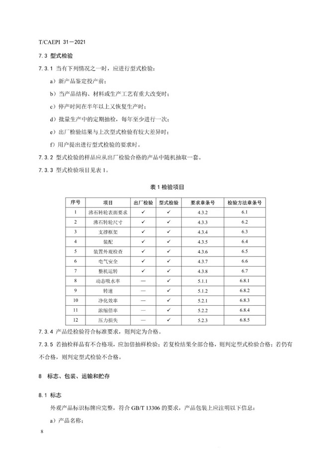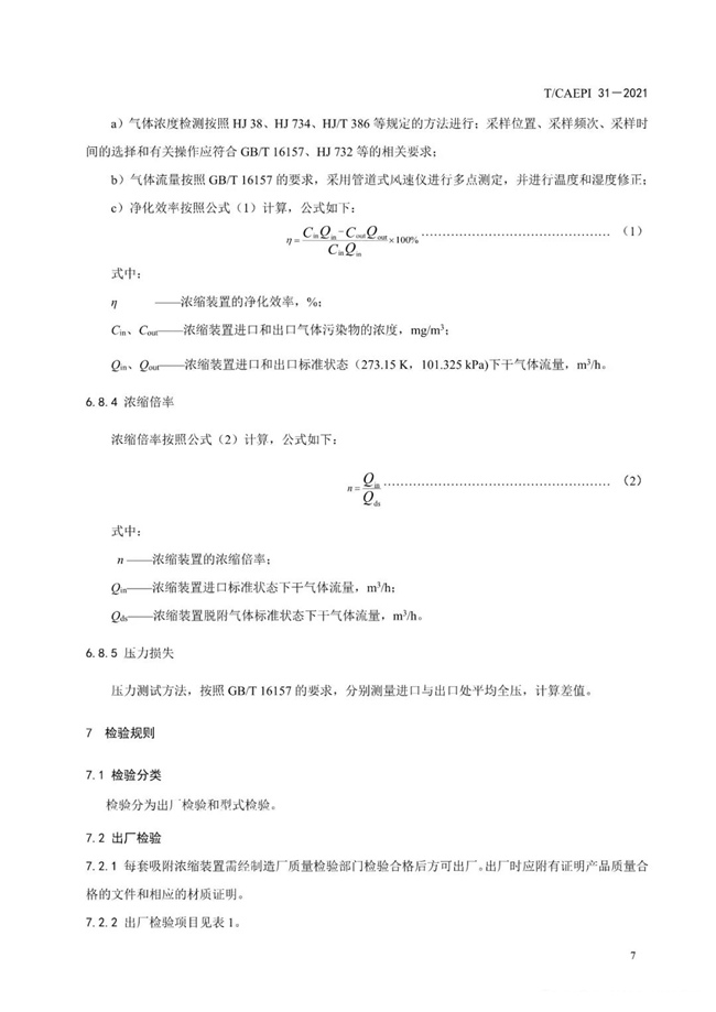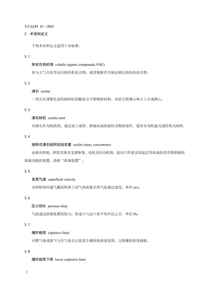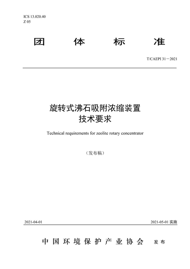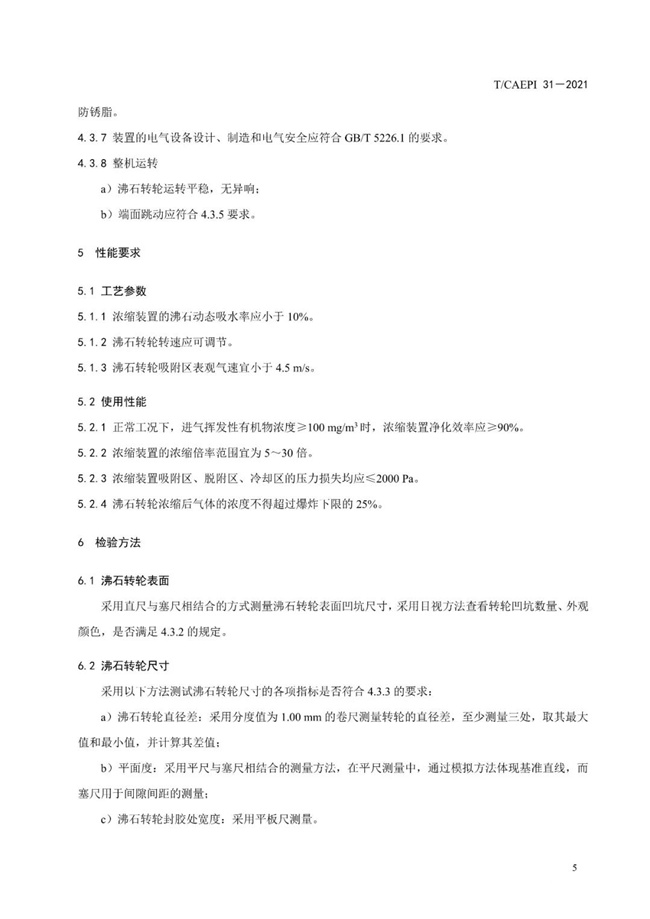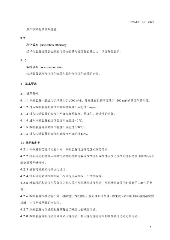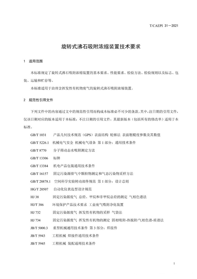 旋转式沸石吸附浓缩装置技术要求-T/CAEPI 31—2021