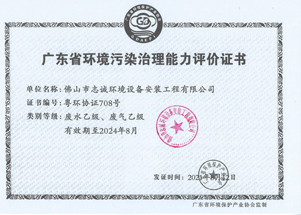 广东省环境污染治理能力评价证书